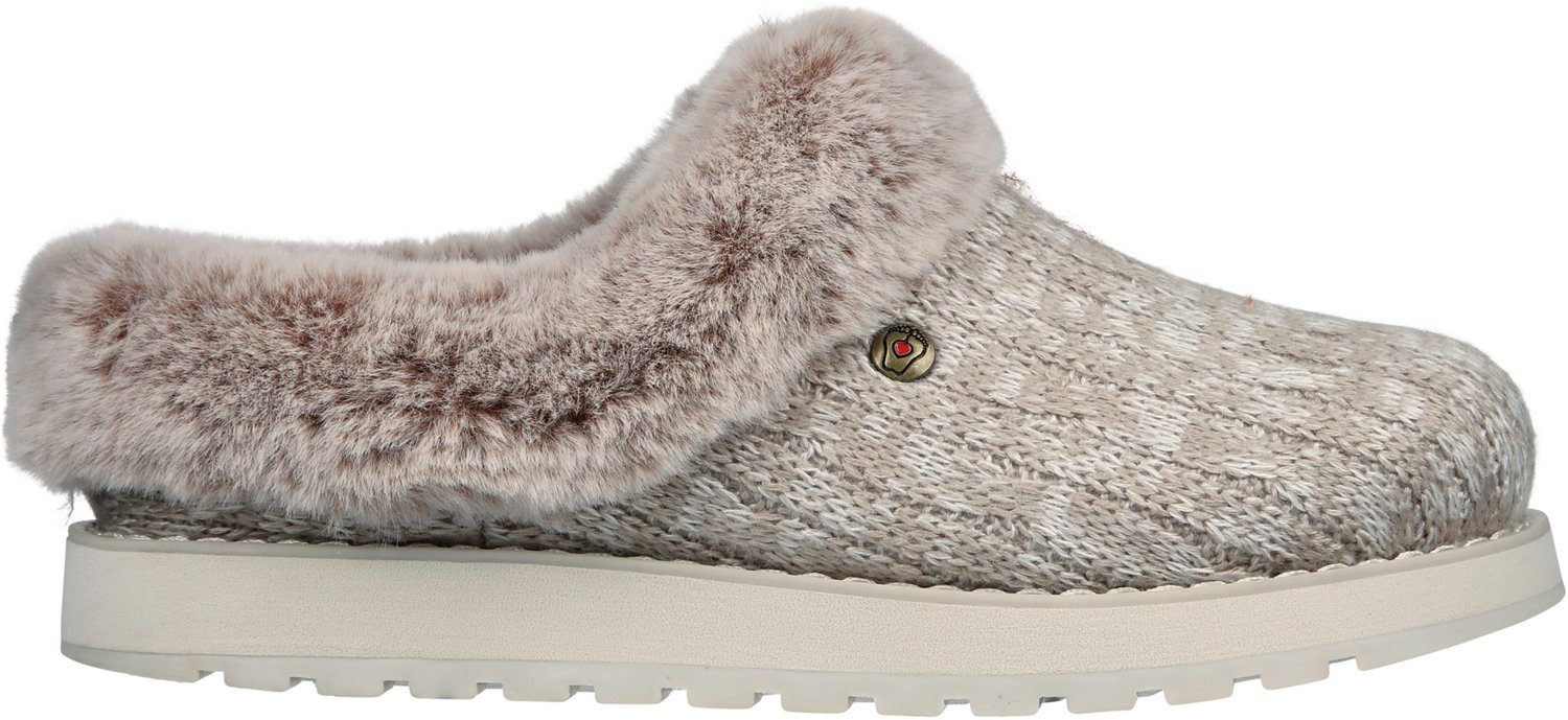 Complete your winter outfit with the SKECHERS Women's BOBS Keepsakes Ice Angel Shoes. Made with soft sweater knit fabric uppers, faux-fur lining and plush foam footbeds, these stylish slip-on casual comfort clog slippers will keep your feet warm while you're out around town. These casual shoes are designed with lowered backs, shock-absorbing midsoles and flexible rubber indoor/outdoor traction outsoles to ensure that you feel comfortable with every step you take.