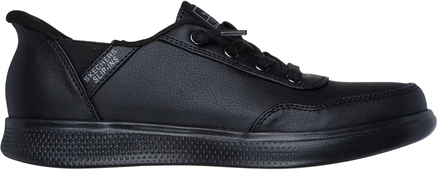Finish off your look with the SKECHERS Women's BOBS Skipper Slip In Shoes. The textured polyurethane synthetic uppers withstand wear and tear, and the flexible traction outsoles bend with every step you take. The SKECHERS logo detail and deco laces highlight an eye-catching appearance. The SKECHERS Memory Foam cushioned comfort insoles cradle your feet in comfort, and the Exclusive Heel Pillows™ help keep your feet in place all day long.