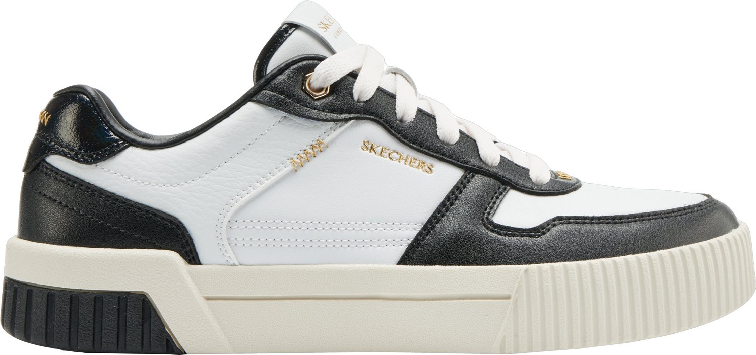Step out in style when wearing SKECHERS Women's Court Classic Jade Shoes. The low-profile duraleather uppers feature color-blocked suede overlays for an extra edge. Vulcanized midsoles add durability, while Air-Cooled Memory Foam® insoles enhance your everyday comfort.
