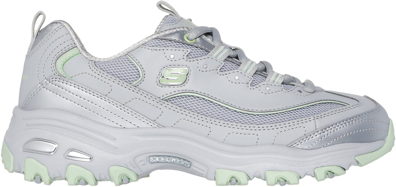 Take on the world in the SKECHERS Women's D'Lites Shoes. Their mesh upper with a duraleather overlay and metallic detail enhances breathability. The flexible outsole allows traction, and their lightweight shock-absorbing midsole provides support. The Skechers Air-Cooled Memory Foam® cushioned comfort insole improves comfort.