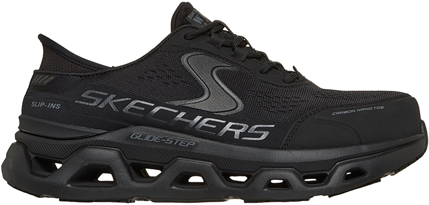 Protect your feet while feeling comfortable in the SKECHERS Women's Slip-Ins Work Max Cushioning Endeavour Shoes. The knit and synthetic uppers afford durability, while the Air-Cooled Goga Mat insoles provide cushioned comfort. The Max Cushioning technology offers support, and the Hands Free Slip Ins design allows for easy on/off.