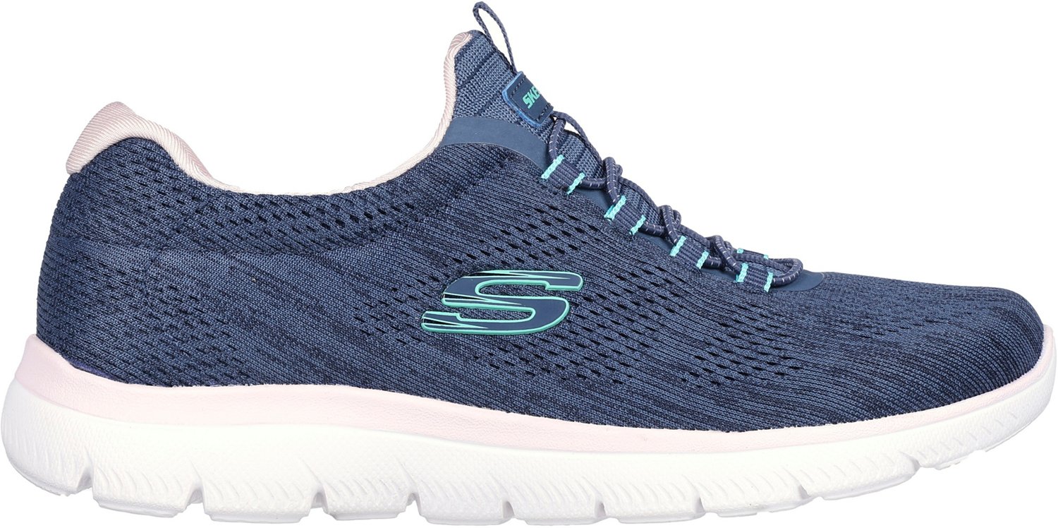 Get ready for your next outing with the SKECHERS Women's Summits Fun Flair Shoes. The vegan mesh uppers promote breathability, while the Memory Foam cushioned insoles provide comfort. The flexible outsoles offer traction, and the stretch laces deliver a slip-on fit.
