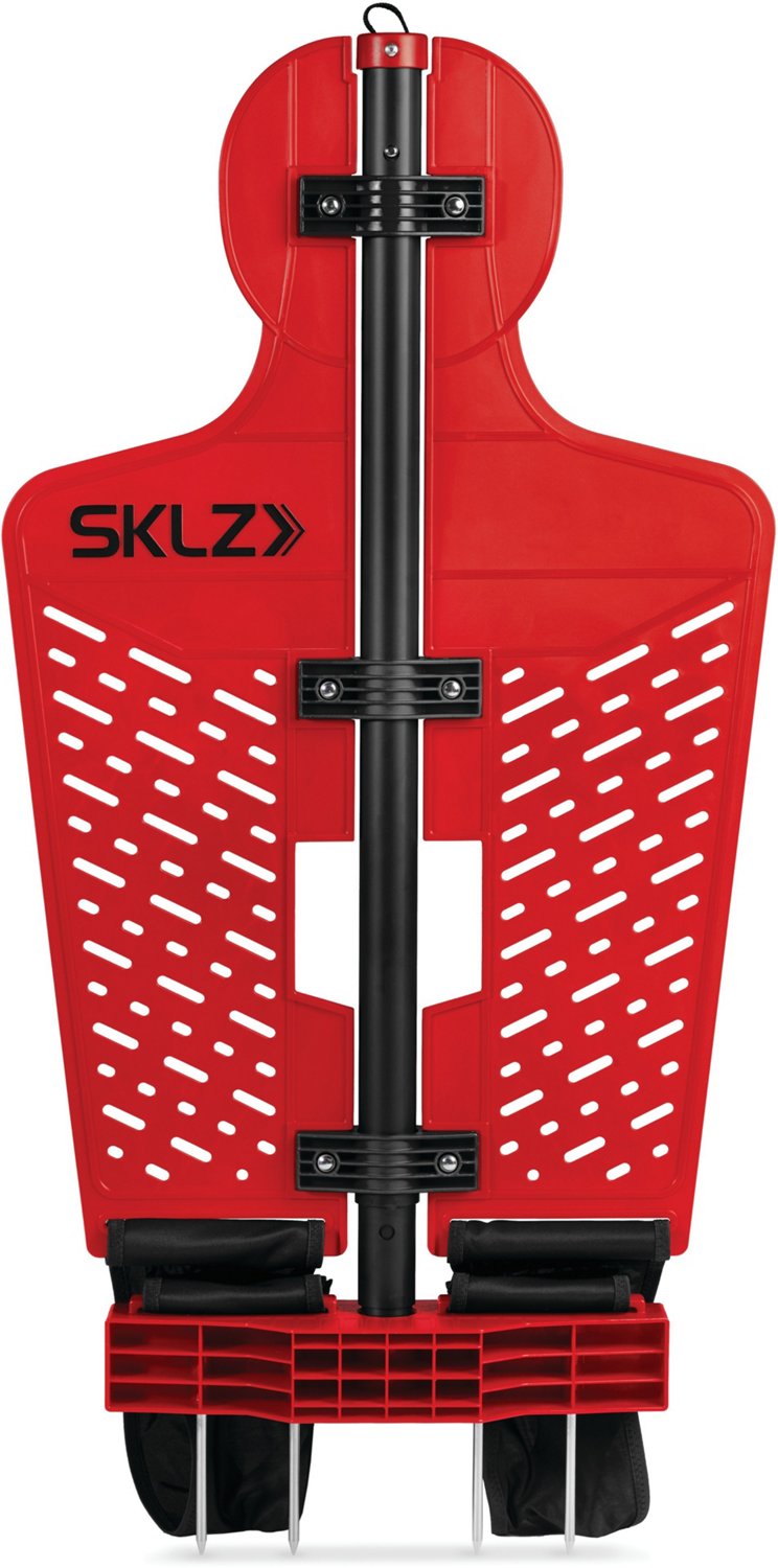 Work on your skills with the SKLZ Pro Training Defender. Designed to improve your passing, dribbling and shooting skills, this training aid features a silhouette that accurately mimics defenders for improved training. The wide base and rotational tension design help keep the mannequin upright. The aluminum spine and 4-inch spikes allow for use on grass, and the defender is constructed with a variety of materials for realistic deflection.