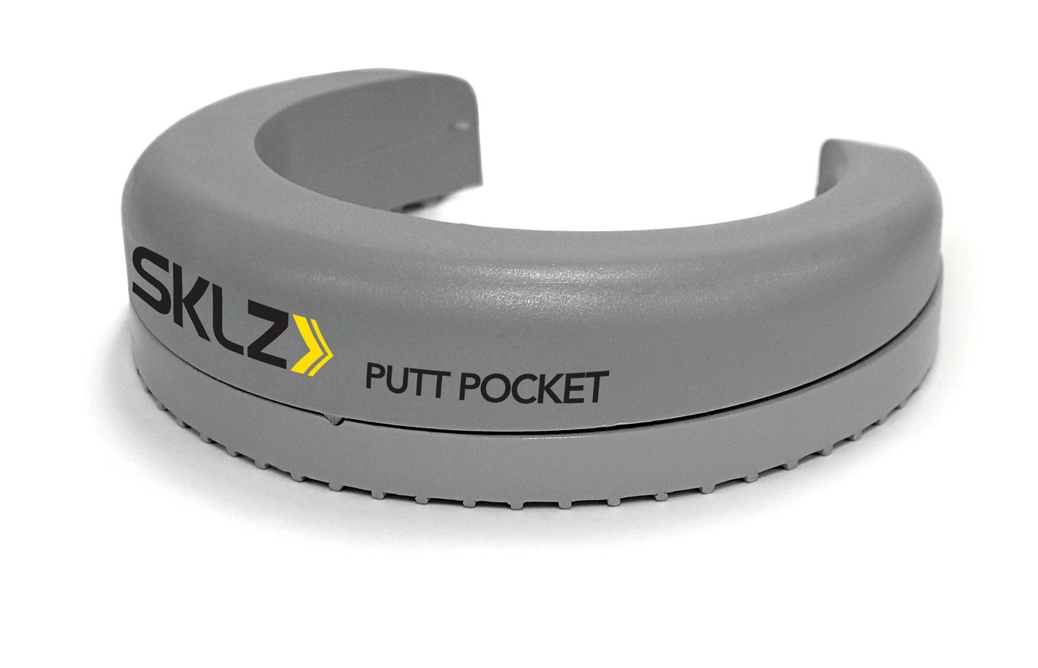 The SKLZ Putt Pocket Accuracy Trainer helps improve the accuracy of your line and the speed on putts of all lengths. The unique horseshoe shape and a 2.75" opening forces you to make putts in the high side of the hole. The training aid fits in a standard golf hole or can be used on the turf when practice greens are too crowded.