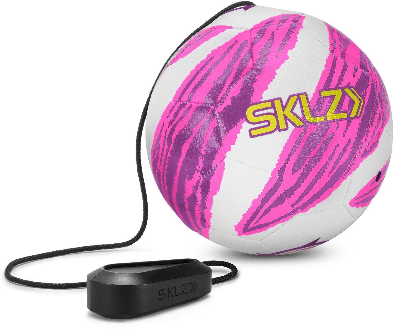 Strengthen your foot-eye coordination and ball control with the SKLZ Star-Kick Touch Trainer. This portable trainer has an ergonomic handle with an adjustable cord to deliver the right height and features 360-degree swivel technology so the size 1 ball can freely spin.