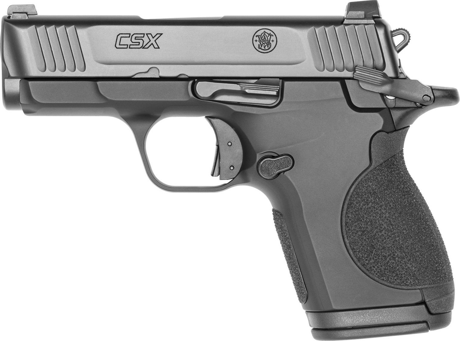Smith & Wesson CSX 9mm All Metal Pistol. This single action 9mm Luger pistol is built on a micro-compact aluminum alloy frame and has an Armornite® corrosion-resistant finish for durability. The interchangeable polymer back straps allow you to customize your level of concealment.