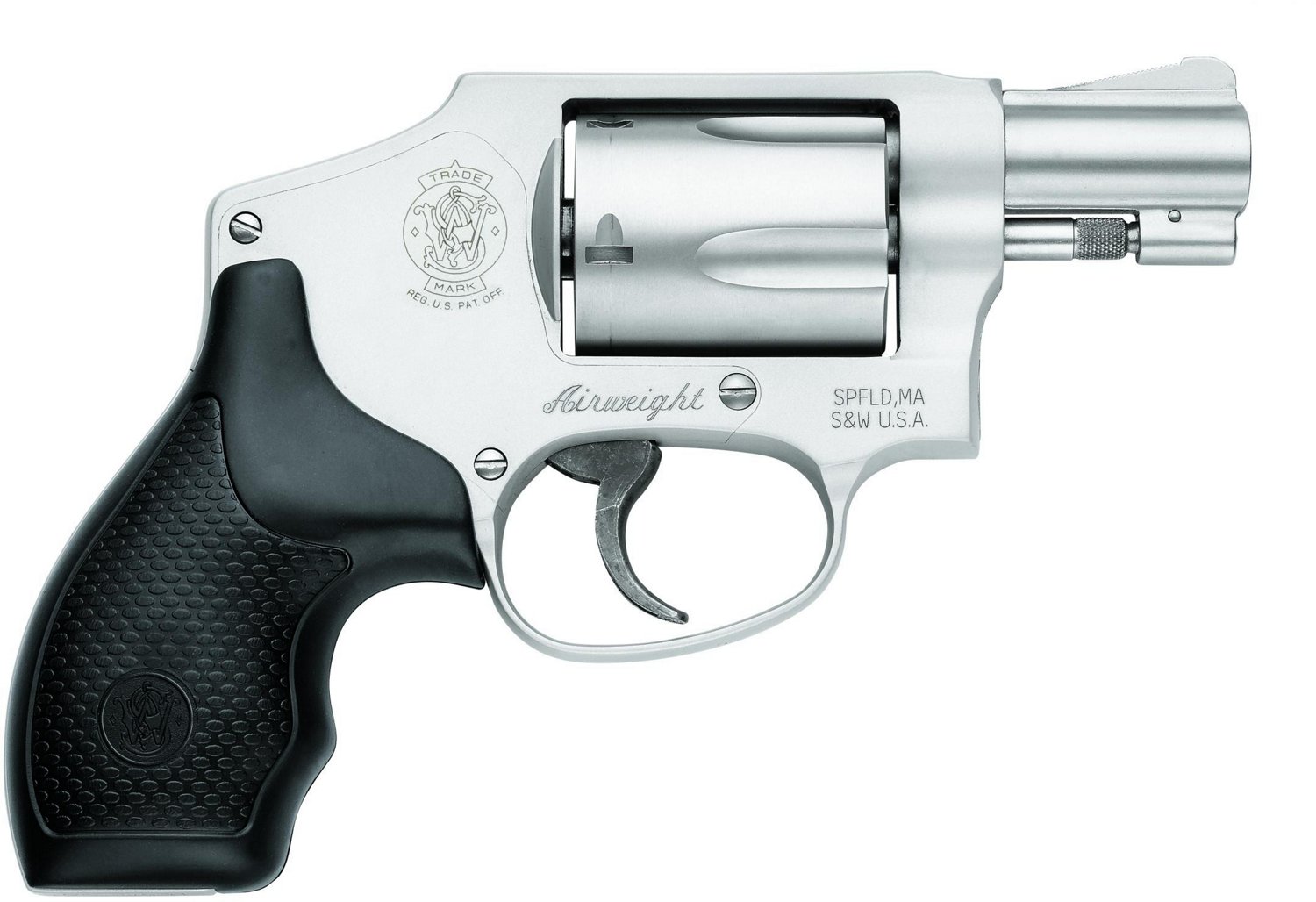 The Smith & Wesson J Frame Model 642 Airweight NL 38 S&W Special Revolver has an aluminum alloy frame and a snag-free enclosed hammer. It is also rated for continuous +P Use and has no internal lock.