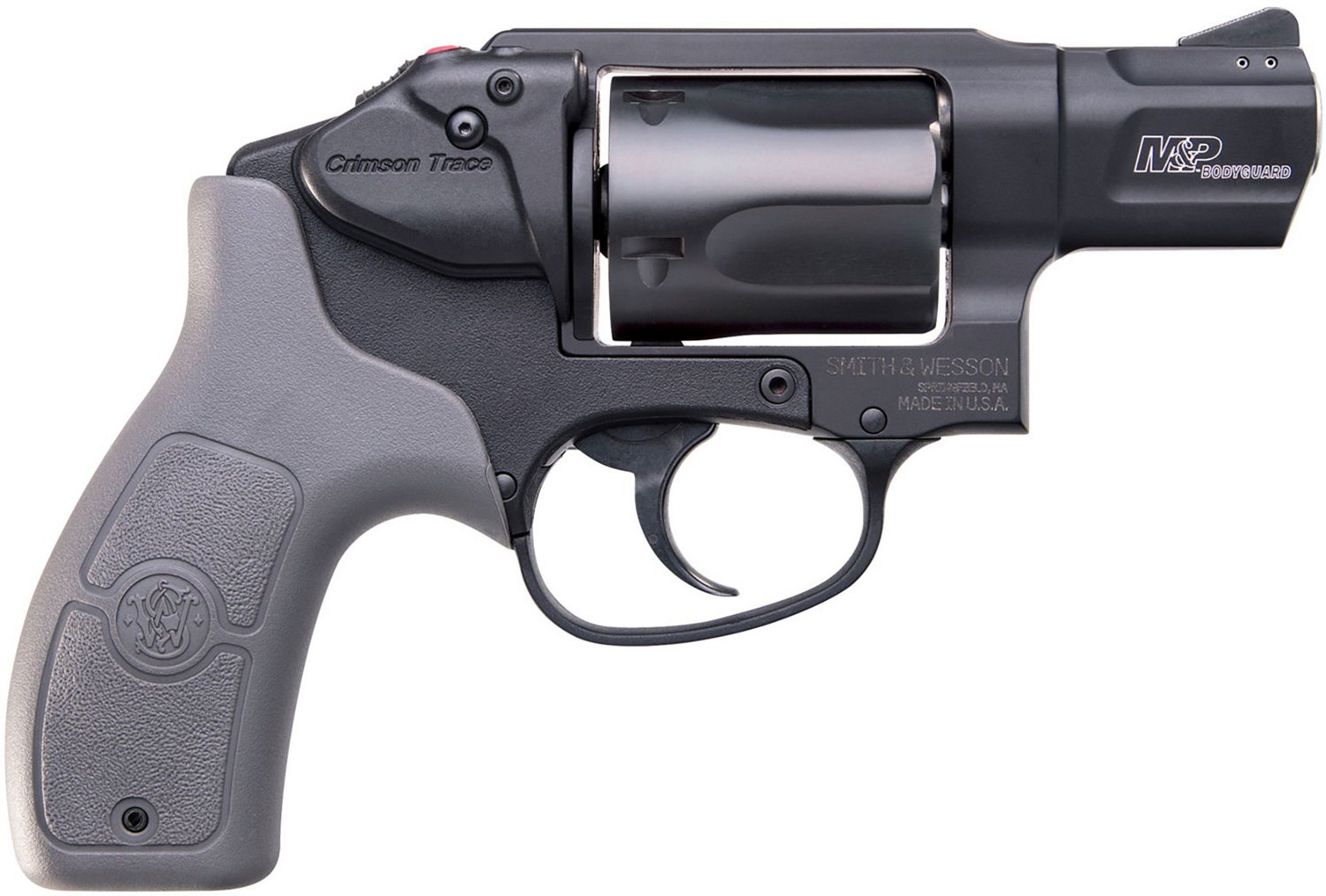 Defend yourself with the Smith & Wesson M&P Bodyguard .38 S&W Special +P Revolver. The stainless steel barrel and cylinder afford durability, while the 1-piece aluminum alloy frame allows for lightweight carrying. The polymer grip offers firm handling, and the hammerless design delivers snag-free holstering.
