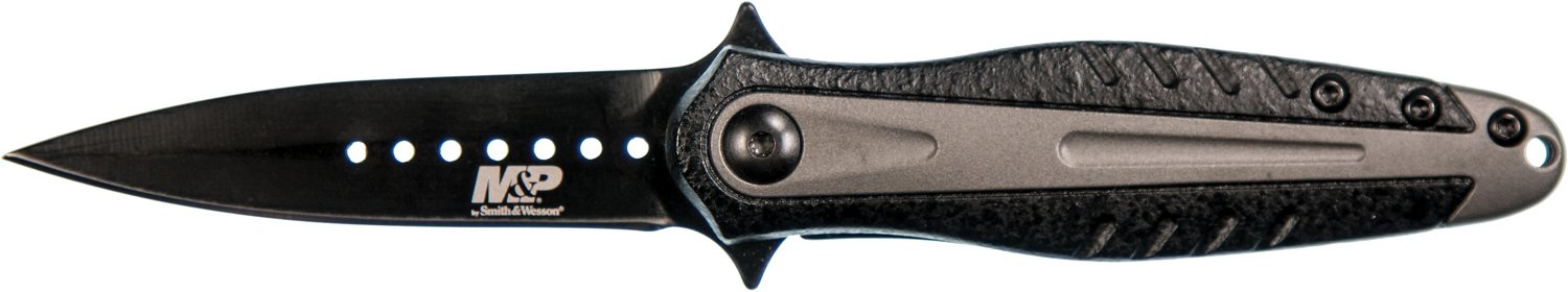 You can tackle a wide array of cutting tasks with help from the Smith & Wesson M&P Folding Dagger. The stiletto-point blade is ultra-sharp and made of high-carbon stainless steel to stand up to repeated use in the field. The handle is constructed from aluminum and nylon to offer comfort and a firm grip. 2.2 ounces. 2.75-inch blade length. 6.1-inch overall length.