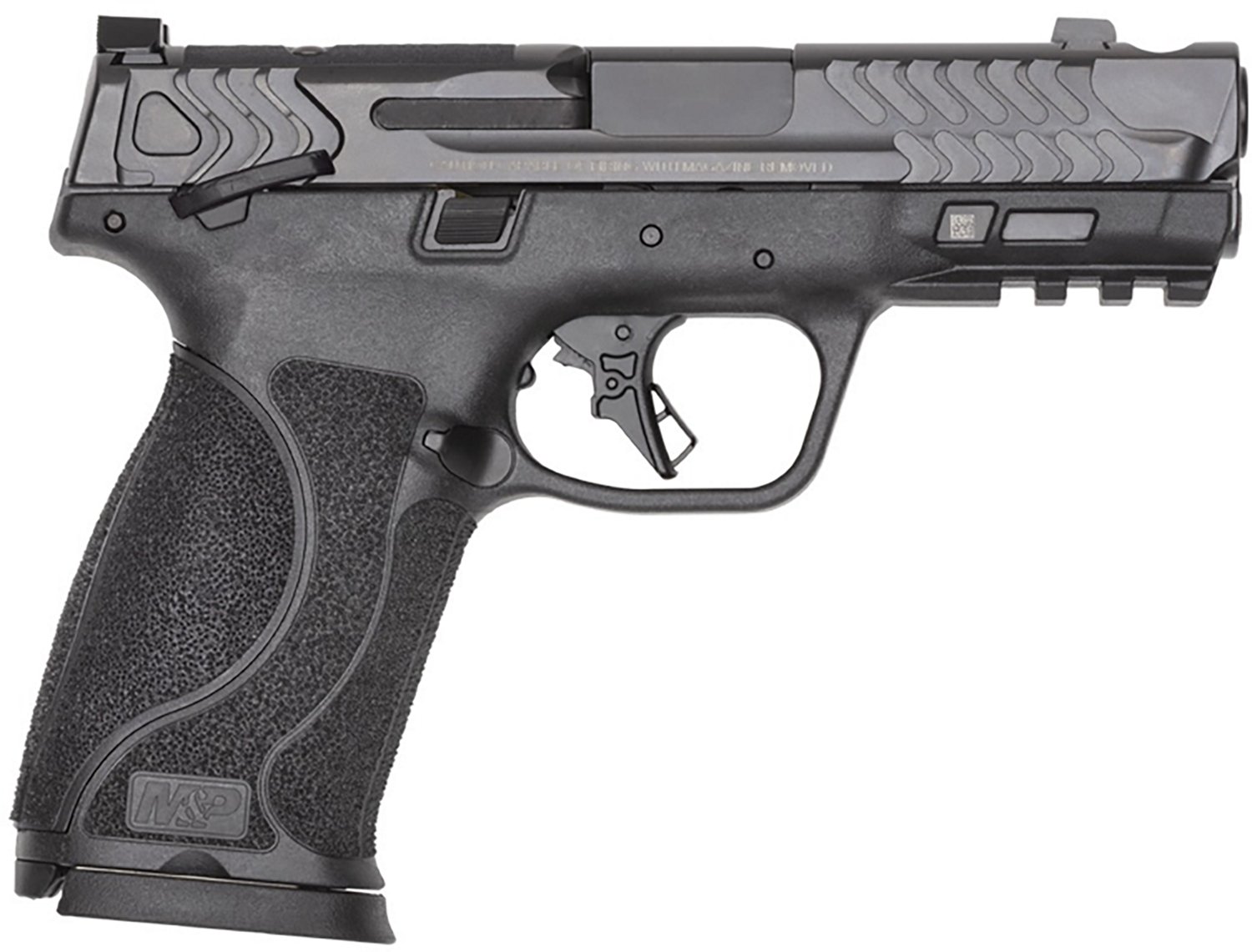 The Smith & Wesson M&P M2.0 Compact Carry Striker-Fired Pistol has a four-inch stainless steel ported barrel and a polymer frame. It is optics-ready with a polymer grip and night sights on the front and rear. The full-size Smith & Wesson M&P M2.0 Compact Carry Striker-Fired Pistol also has a flat-face trigger, a thumb safety and a 10+1-round capacity.