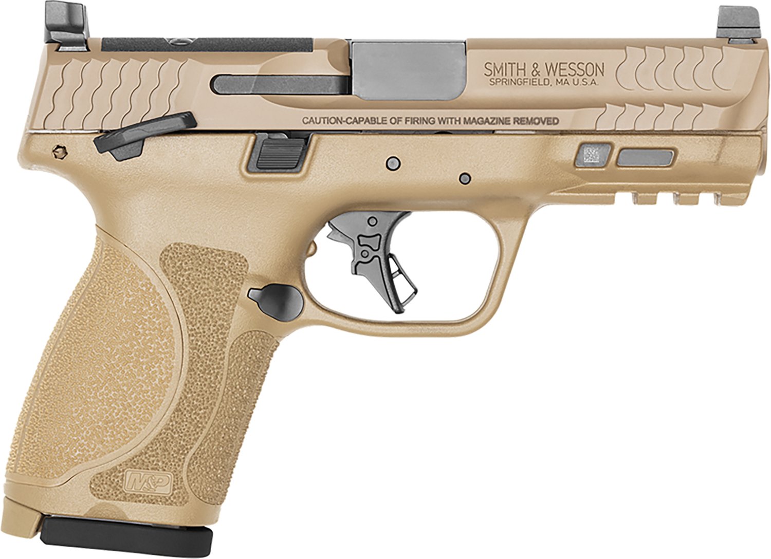 The Smith & Wesson M&P M2.0 MA Compliant Compact 9mm Luger Striker Fired Pistol is made with a stainless-steel barrel, a compact polymer frame and a polymer grip style. The pistol is designed with a tall 3-Dot white sight and a Picatinny rail and comes with 2 magazines and 4 Palmswell grip inserts.