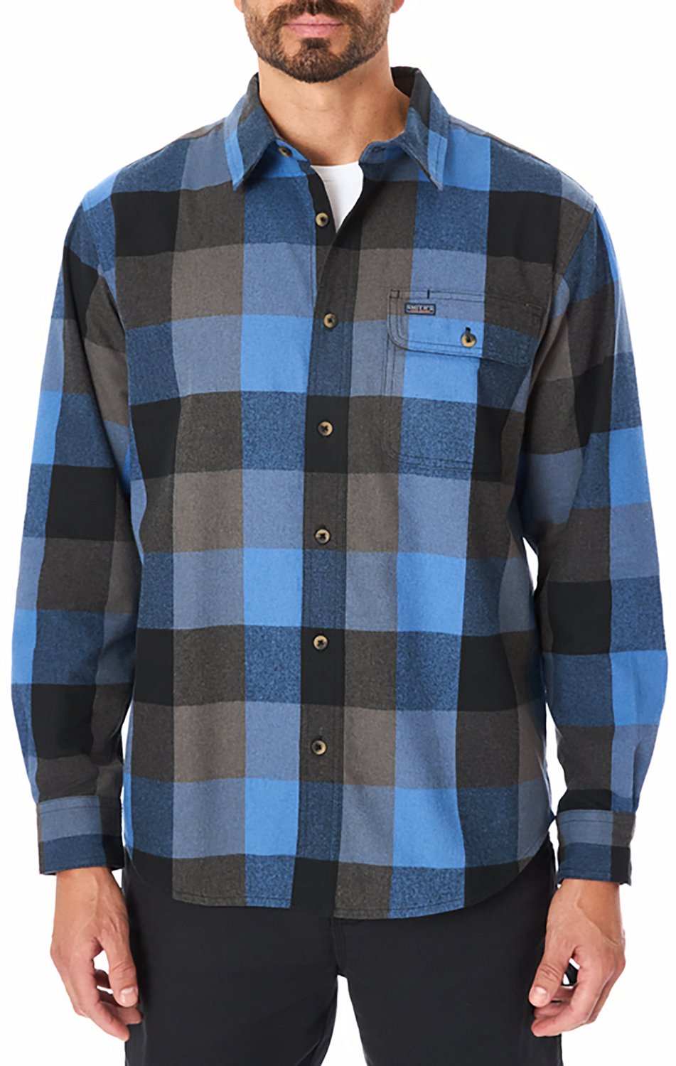 Put on the Smith's Workwear Men's Buffalo Flannel Button-Up Shirt and get to work. The shirt is made of heavyweight cotton flannel that is brushed for comfort, and its double-stitched design helps ensure long life. The flap pocket features a pen slot to keep a writing utensil nearby.