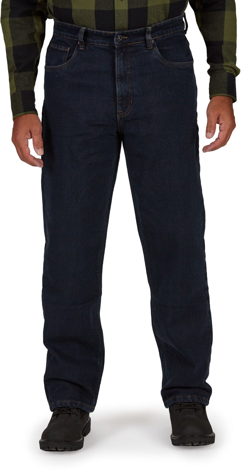 Take on the work day with comfort on your side when you wear the Smith's Workwear Men's Camo Fleece Lined 5-Pocket Jeans. The cotton, polyester and spandex denim fabric offers a soft, stretchy fit. The 100% polyester fleece lining provides a cozy, warm feel. The 5-pocket design delivers ample storage for your essentials, while the Double-Tough stitching and riveted stress points supply strength and durability for lasting wear.