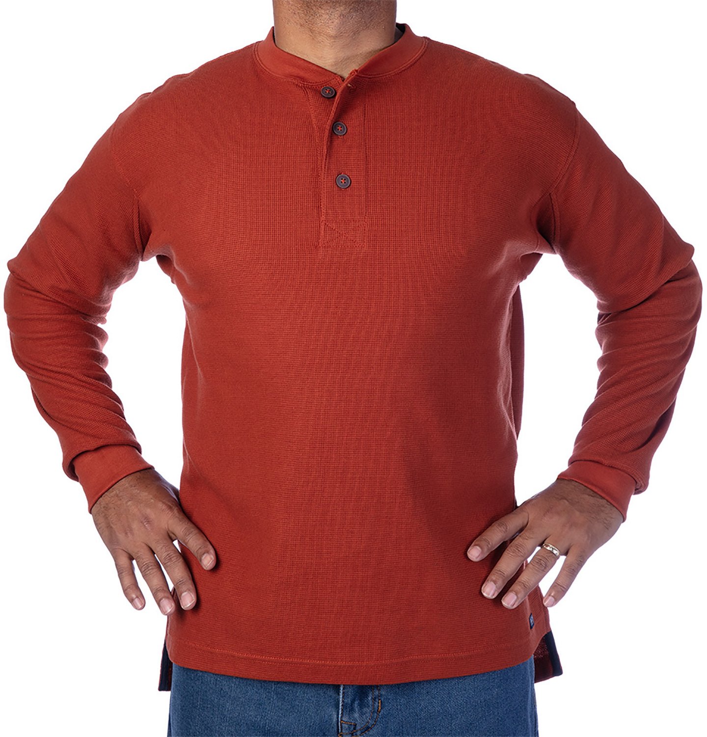 Smith's Workwear Men's Extended Tail Mini Thermal Knit Henley Pullover