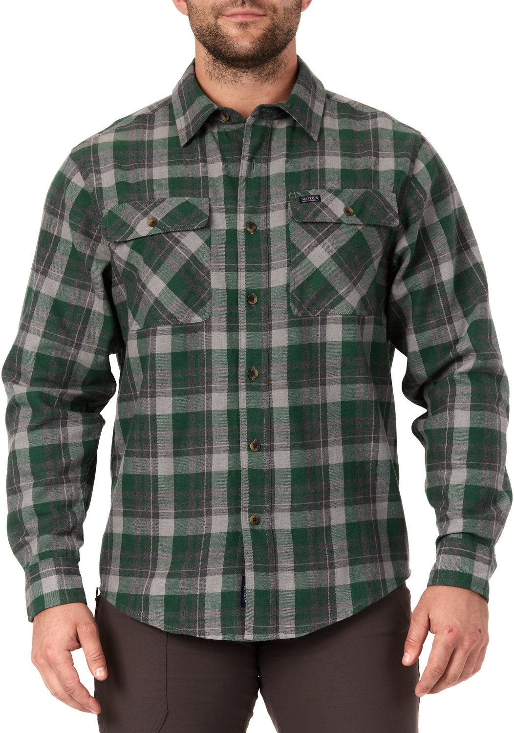 Take on the work day with style and comfort on your side when you wear the Smith's Workwear Men's Plaid 2-Pocket Flannel Shirt. The cotton and polyester construction with Double-Tough stitching offers a soft, lightweight feel. The long sleeves with button plackets and adjustable cuffs encourage a custom fit. The 2 button flapped chest pockets with a pen slot provide storage for your essentials, while the Buffalo plaid print adds a stylish appearance to your look.