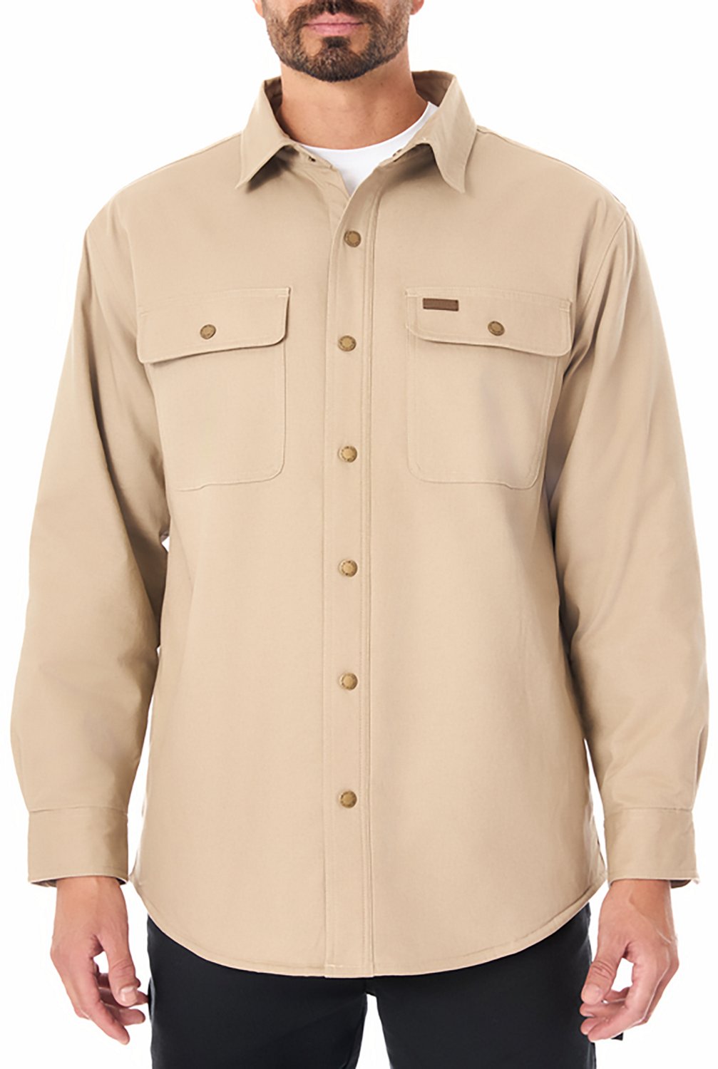 Add a new staple to your wardrobe with the Smith's Workwear Men's Sherpa-Lined Canvas Snap Shirt-Jacket. Its material is comprised of 98% cotton and 2% spandex is easy to clean. The butter-sherpa lining provides a warm, lightweight feeling, and the diamond quilted taffeta sleeve lining has a luxurious look. It has 4 pockets that allow for plenty of storage space.