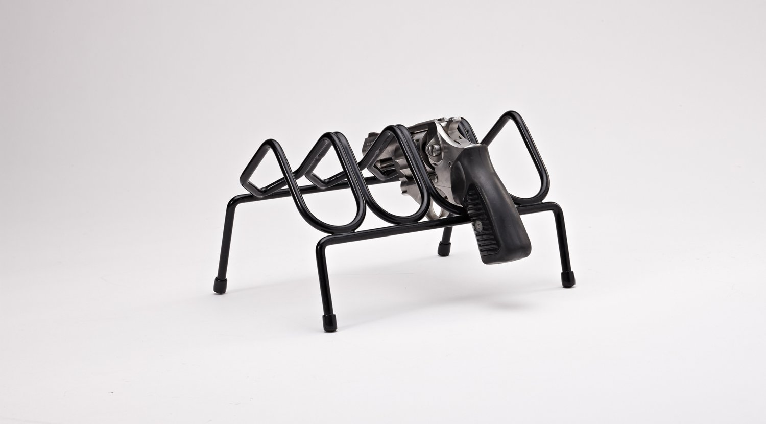 Store your firearms in an organized fashion with the SnapSafe 4-Gun Pistol Rack. The PVC coating exerts durability, and the design helps you save space while maintaining secure, sturdy storage.