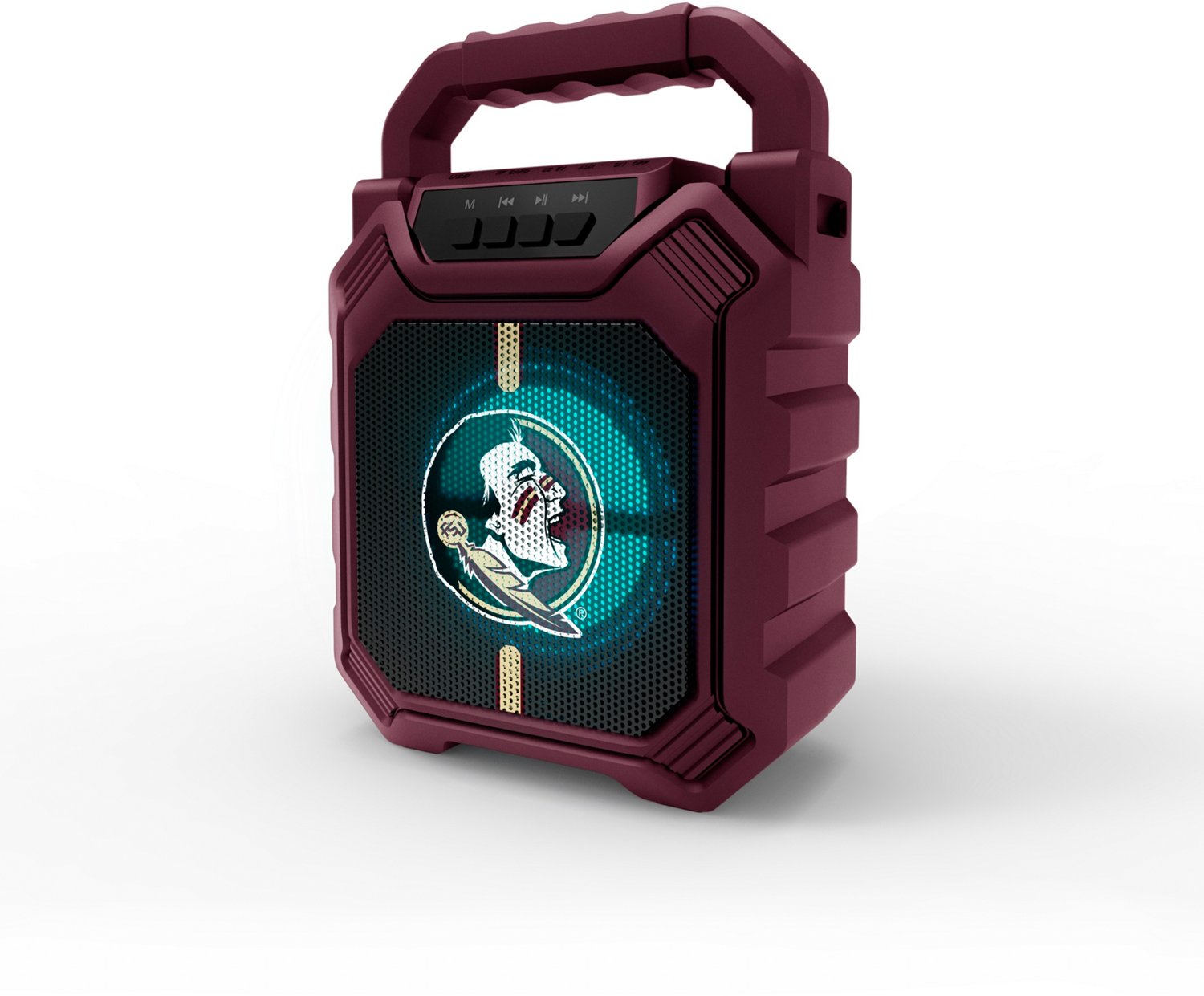 Use the Soar Florida State University ShockBox XL Bluetooth Speaker Version 3 to get the party started wherever you go. This portable speaker pairs to your smartphone via Bluetooth® and works with a generous 30-foot range. When you don't want to listen to your own playlist, turn the speaker over to FM radio mode. Color-changing LED lights add to the vibe, and the official Florida State graphics display your love for the Seminoles.