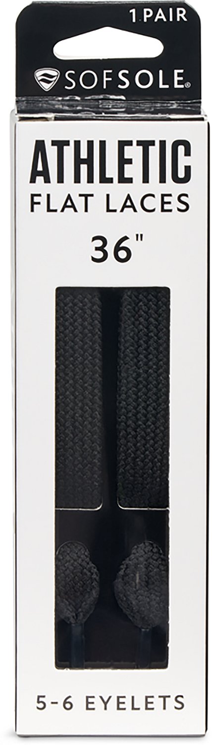 Replace the laces on your shoes with the Sof Sole Athletic Flat Premium Laces. These laces are made of polyester and acetate material for durability, and they measure 36 inches in length.