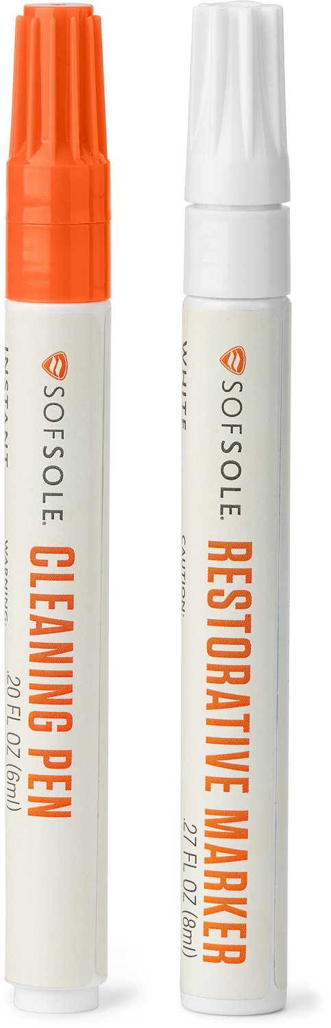 Keep your favorite shoes looking brand-new with the Sof Sole Restore & Renew Kit. This kit includes everything you need to freshen up your shoes. The cleaning pen uses non-bleach cleaner to eliminate most scuffs and stains, while the restorative marker paints over marks with oil-based paint. The compact size makes this kit convenient for travel.
