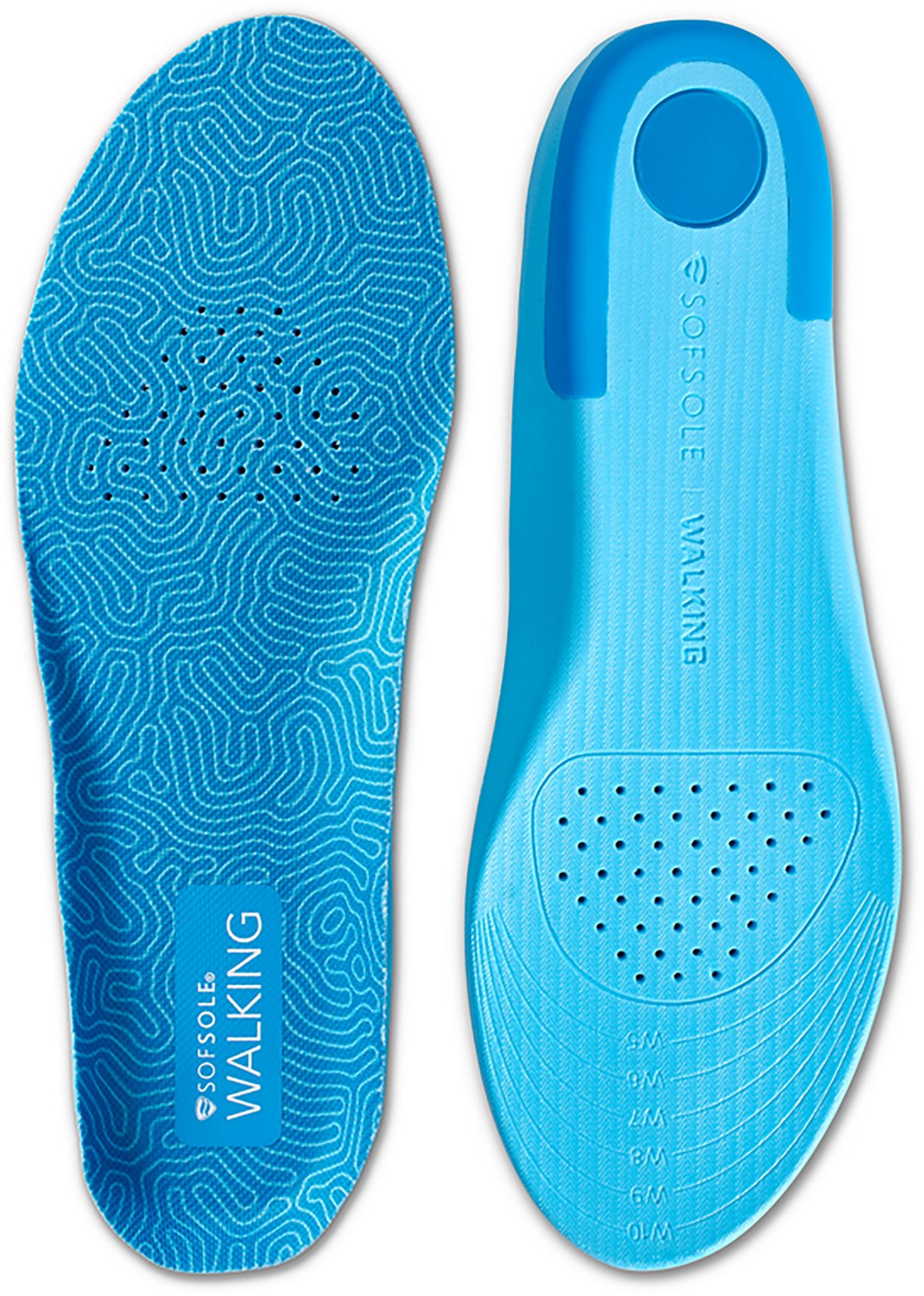 Meet your walking needs with the Sof Sole Walking Insoles. Cobra heel wraps provide stability and reduce fatigue, while the targeted heel cushioning absorbs shock at high-impact areas. Top cover and forefoot perforations promote breathability, and the foam cushioning provides heel-to-toe comfort.