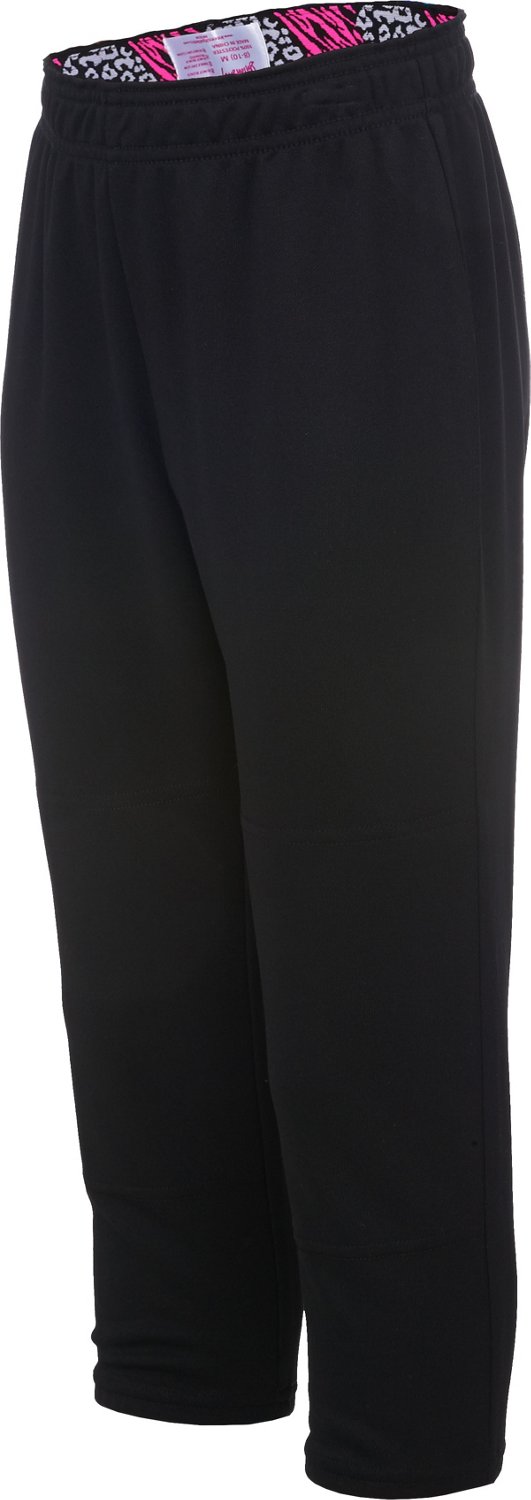 She'll look sharp on the field in the Soffe™ Girls' Intensity Wild Waistband T-ball Pant. Made of 100% polyester double knit for comfortable wear and durability, this T-ball pant features a right hip welt pocket and a 1.5"W jacquard wild thing-print waistband for a cool look. Intensity logo. 17" inseam.