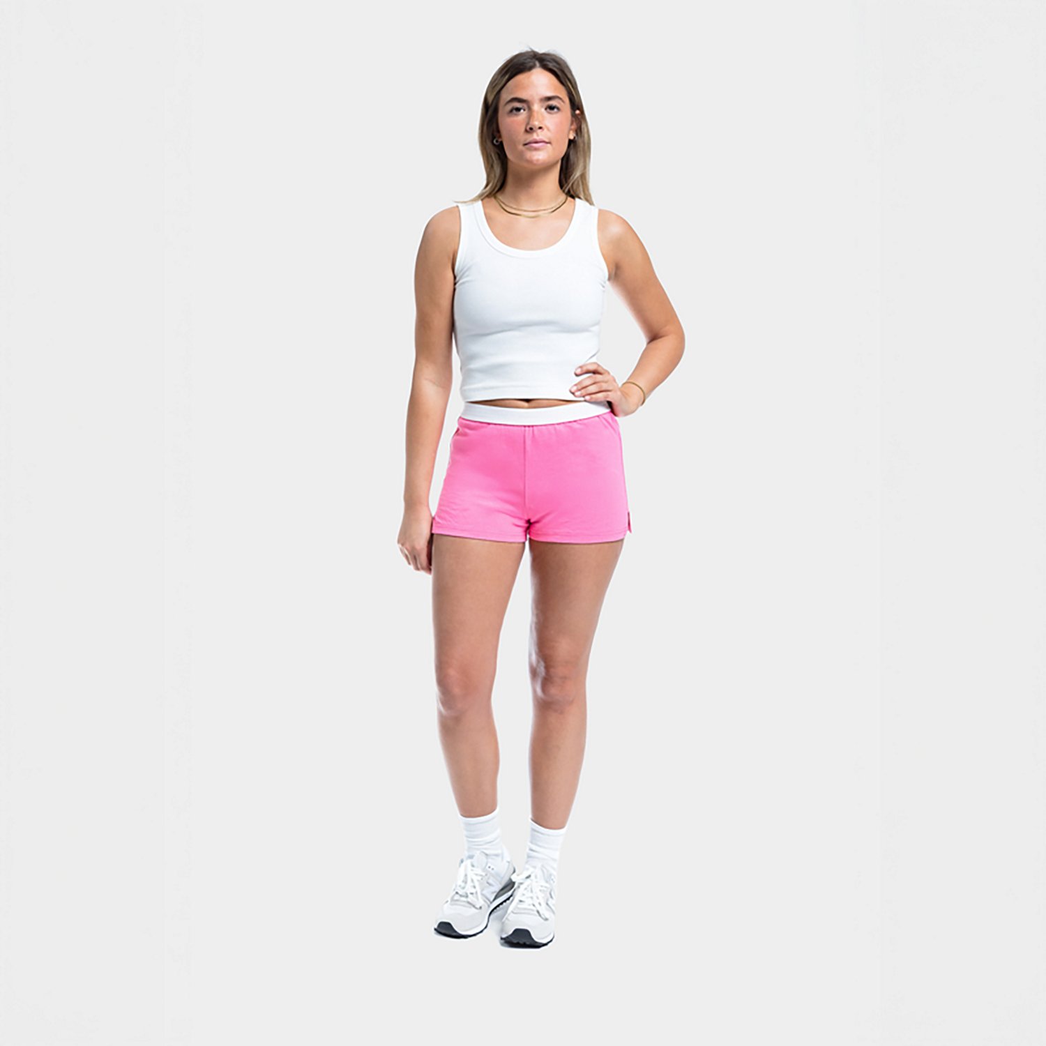 The Soffe Juniors' Authentic Shorts, also known as the classic cheer shorts, are the go-to choice for everything from tumble to lounge. This iconic style is known for its exposed white elastic band, V-notch cutout at the side, and just-right length. Wear it as is, or layer up with compression shorts; either way, these shorts will take you from cheer, tumble and dance to just chilling in no time.