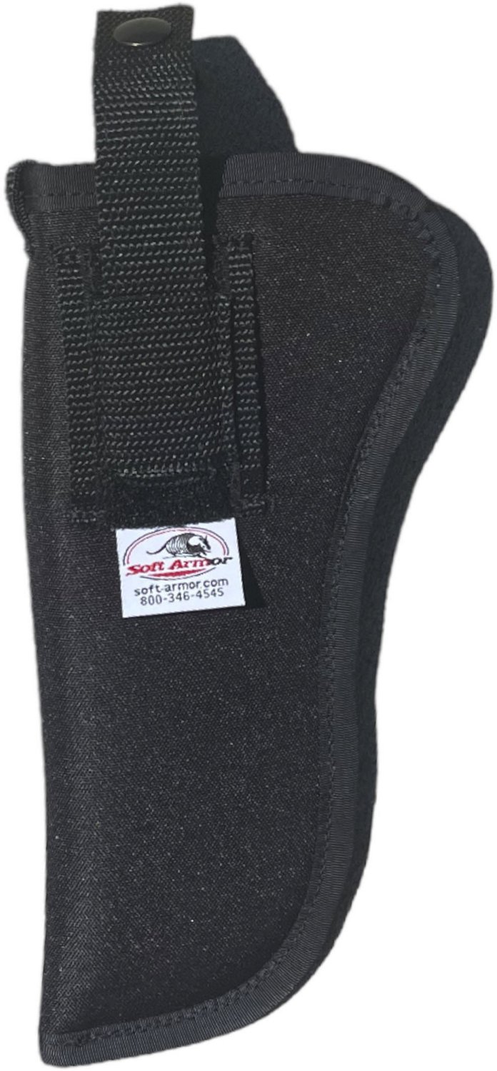 Use the Soft Armor TB Series 3-4" Barrel Medium Frame Revolver Ambidextrous Hip Holster to keep your handgun protected. Made with a durable 600D nylon exterior for long-lasting use, this holster comes with a fully adjustable webbing thumb break. The holster also features a soft padded lining that does not mar the finish of the gun.