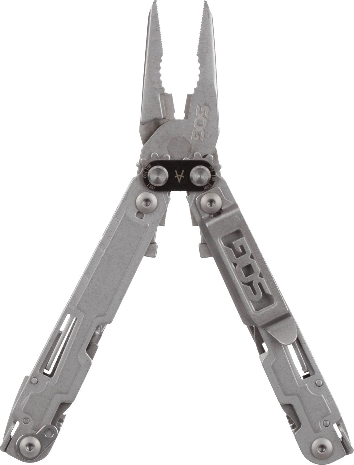 Open bottles and cans, tighten bolts and screws, make precise measurements and more with the SOG PowerAccess EDC Multi-Tool. Great for camping and everyday use, this multi-tool has 18 tools that securely lock in the open position, and a Compound Leverage mechanism that helps you keep a strong hold on nuts and bolts with the pliers while you work.