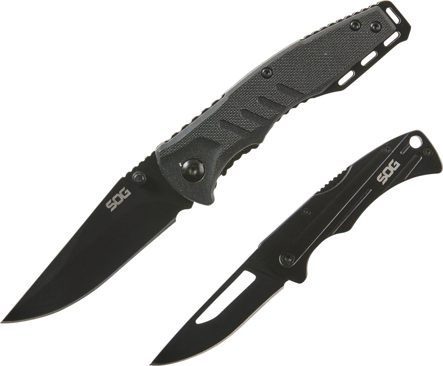 Be prepared with the SOG Pro 2.1 Knife Kit. The set includes 2 folding knives designed for general use with long-lasting steel blades. One knife has a 3.15-inch blade length and the other has a 2.2-inch blade length.