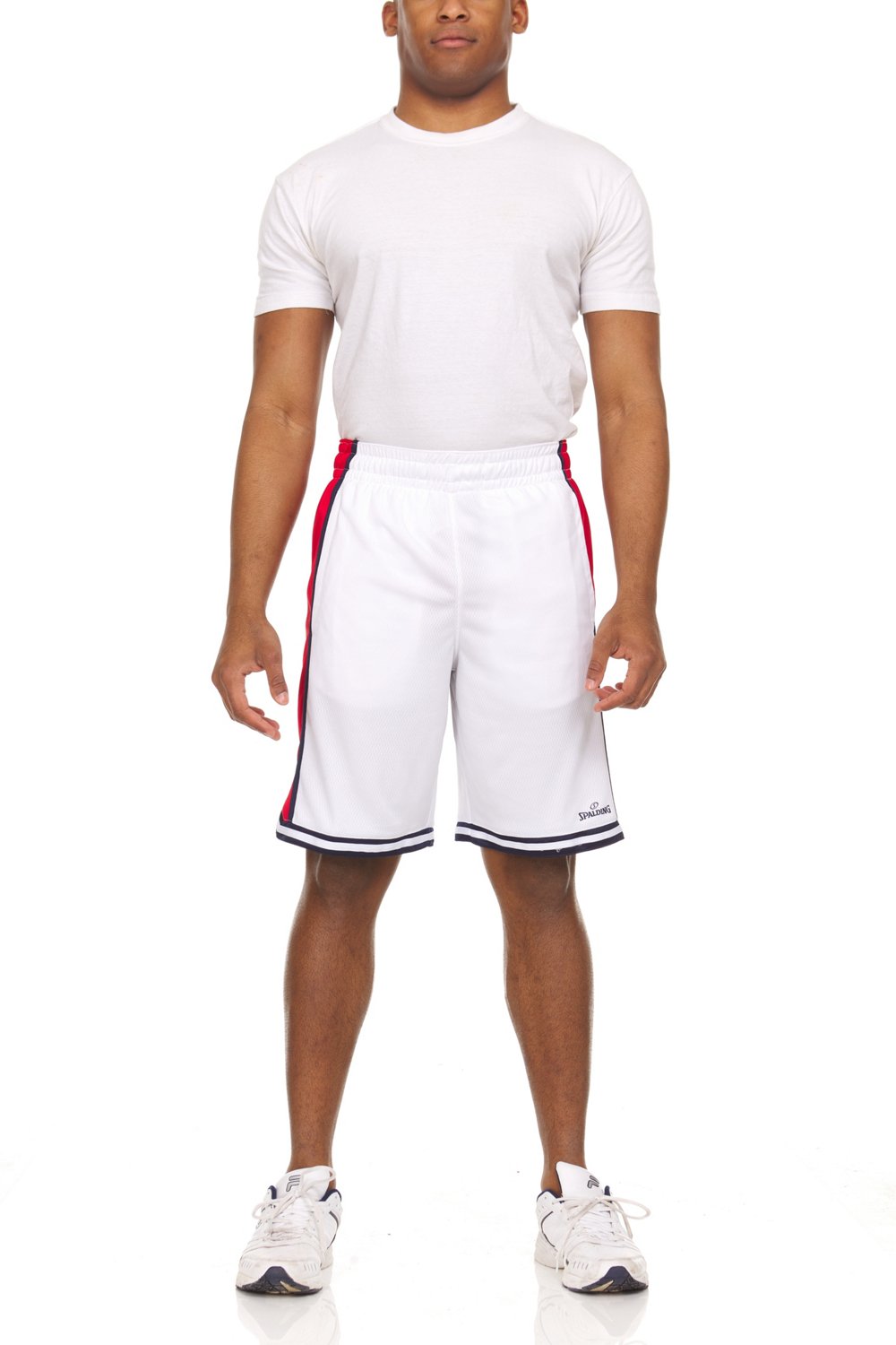 Stay comfortable while you play in the Spalding Men's Legends Basketball Shorts 10 in. These shorts are crafted from 100% polyester mesh for durability and feature reverse dazzle side piecing and taping. The shorts are also designed with side seam pockets and a 10-inch inseam.