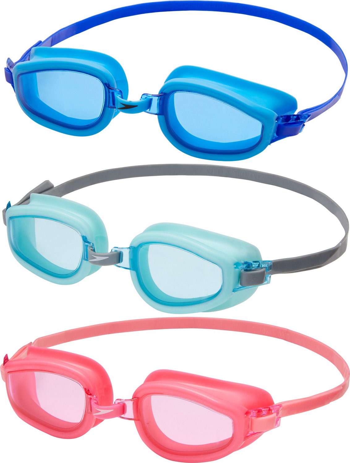 Enjoy the underwater sights when you wear the Speedo Kiaweh 2.0 Swim Goggles 3-Pack. These swim goggles boast a fully adjustable nose bridge for a custom fit and feel, and feature large lenses that help ensure a wider range of visibility. The silicone strap provides additional comfort and a sleek, stylish appearance.