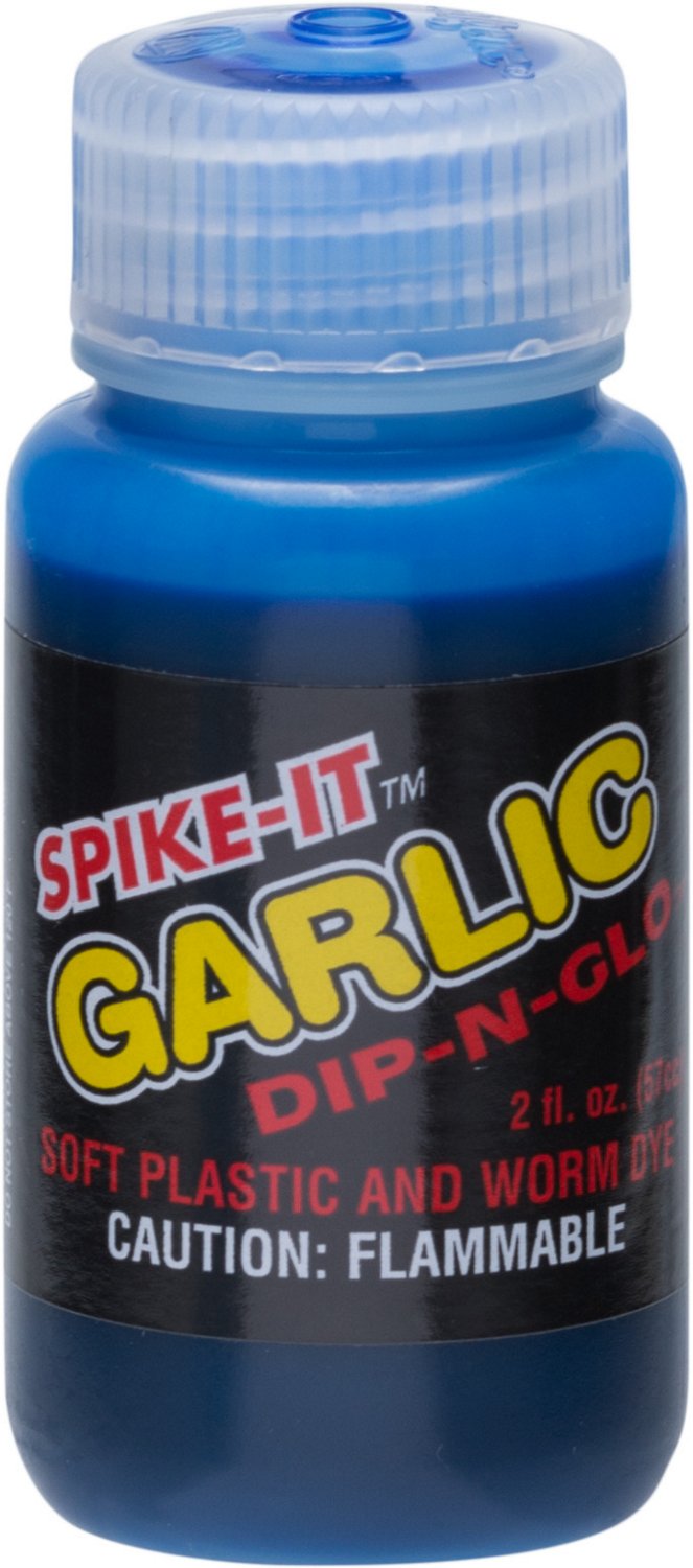 The Spike-It Dip-N-Glo™ 2 oz. Garlic Lure Dye is designed for dipping plastic baits such as worms, grubs and skirts and creates immediate and permanent color changes. The garlic scent penetrates the lure to produce a long-lasting effect.