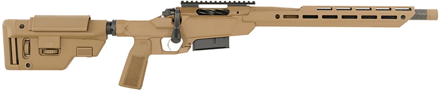 Arm yourself with the Springfield Armory 2020 Heatseeker .308 Win Bolt Action Rifle. It is bolt action with a 5+1-round capacity. The carbon fiber barrel with a Coyote Brown Cerakote® finish is 16-inches long, and it is equipped with a Sharps Bros Heatseeker M-Lok chassis. The TriggerTech adjustable trigger finishes off the design.