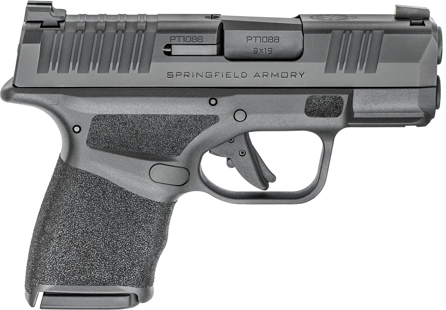 The Springfield Armory Hellcat 9mm 3 in Micro-Compact 13-Round Pistol boasts an 11+1 round capacity with a flush-fit magazine to fire up to 12 consecutive shots, and it is designed with rear, top and forward slide serrations to maximize the grip on your slide.