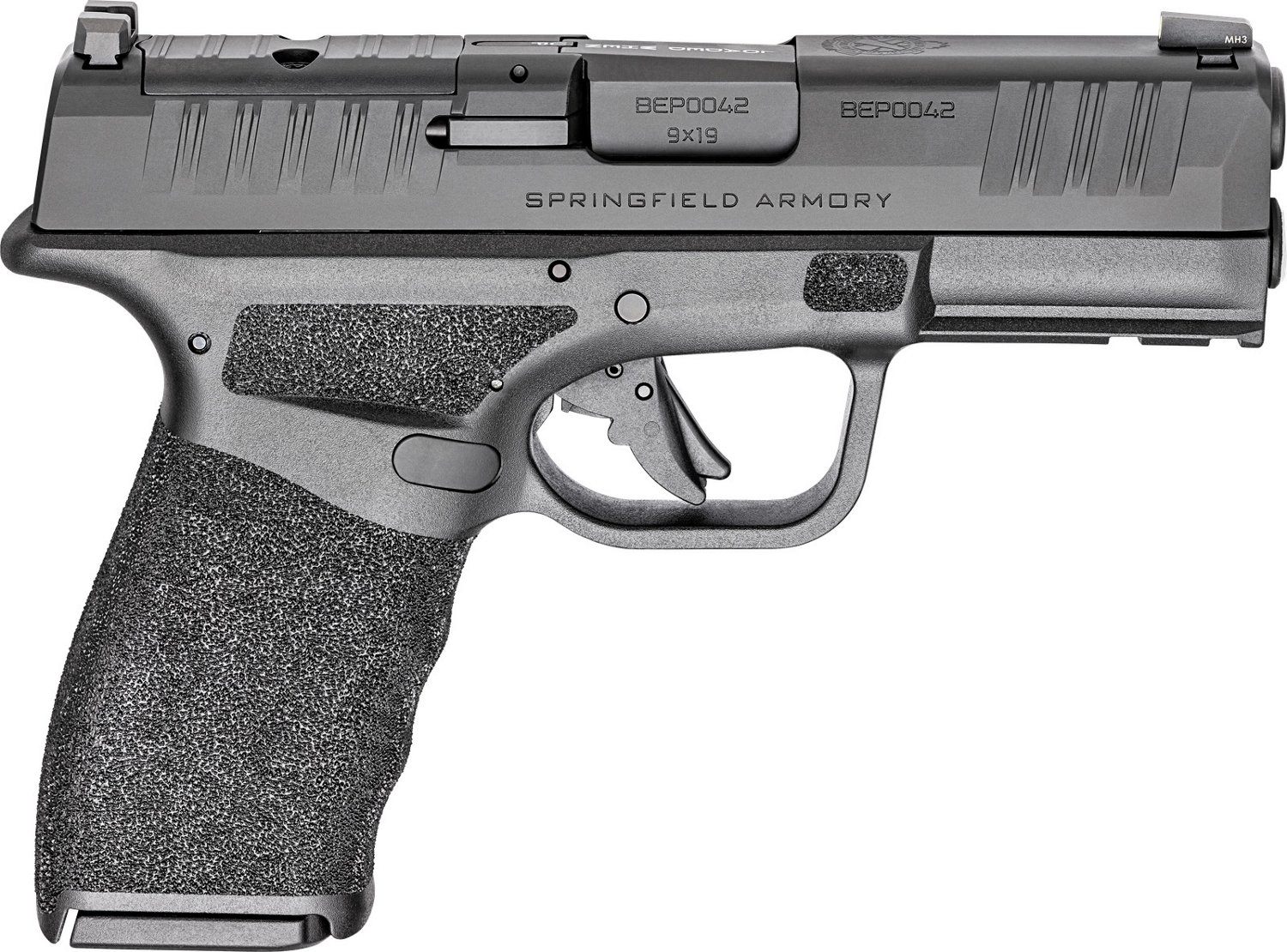 The Springfield Armory Hellcat Pro 9mm Pistol features striker fired action and a 10-round capacity. It has a hammer forged barrel, polymer frame and optics ready slide. An adaptive grip texture, front night sight and accessory rail complete the design.