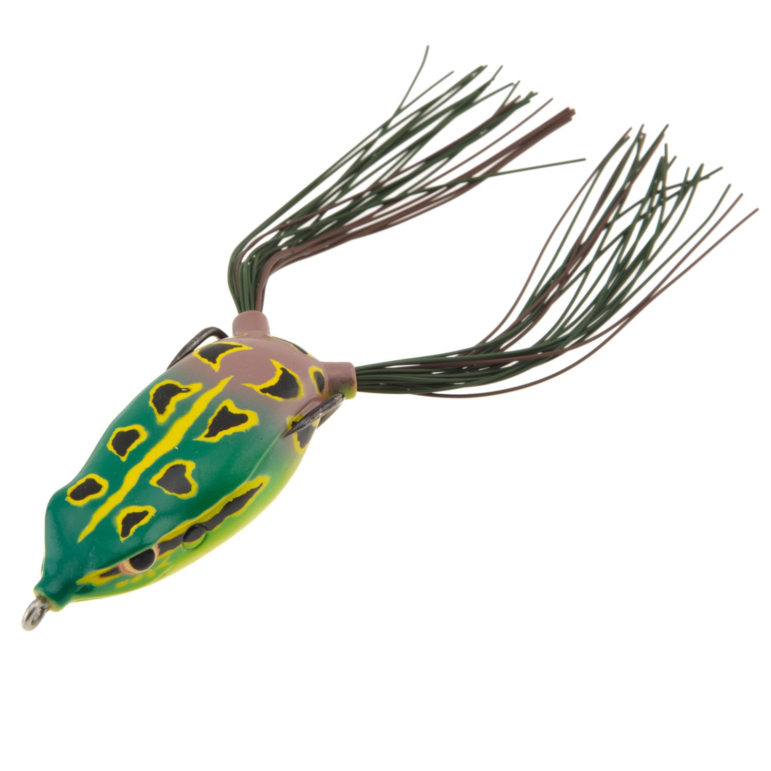 Catch fish in freshwater and saltwater with the SPRO Bronzeye 2-1/2" Topwater Frog Bait. Designed to attract the attention of bass, the frog features a lifelike appearance and realistic colors. The frog is great when fished in heavy cover or open water and has a Gamakatsu Superline size 3/0 EWG double hook for secure hook sets. Weighs 5/8 oz.