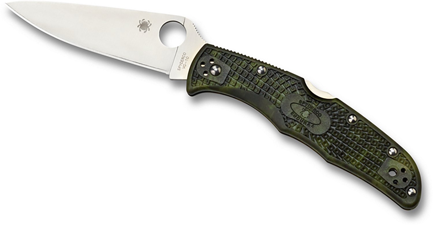 Take cutting to the next level with this Spyderco Endura® 4 Lightweight Folding Knife, featuring a hard-wearing PlainEdge™ VG-10 steel blade. FRN handle scales ensure your grip remains firm while you work, and their Zome pattern provides a unique, attention-getting look. 3.3 oz. 3.8-inch blade length. 8.7-inch overall length.