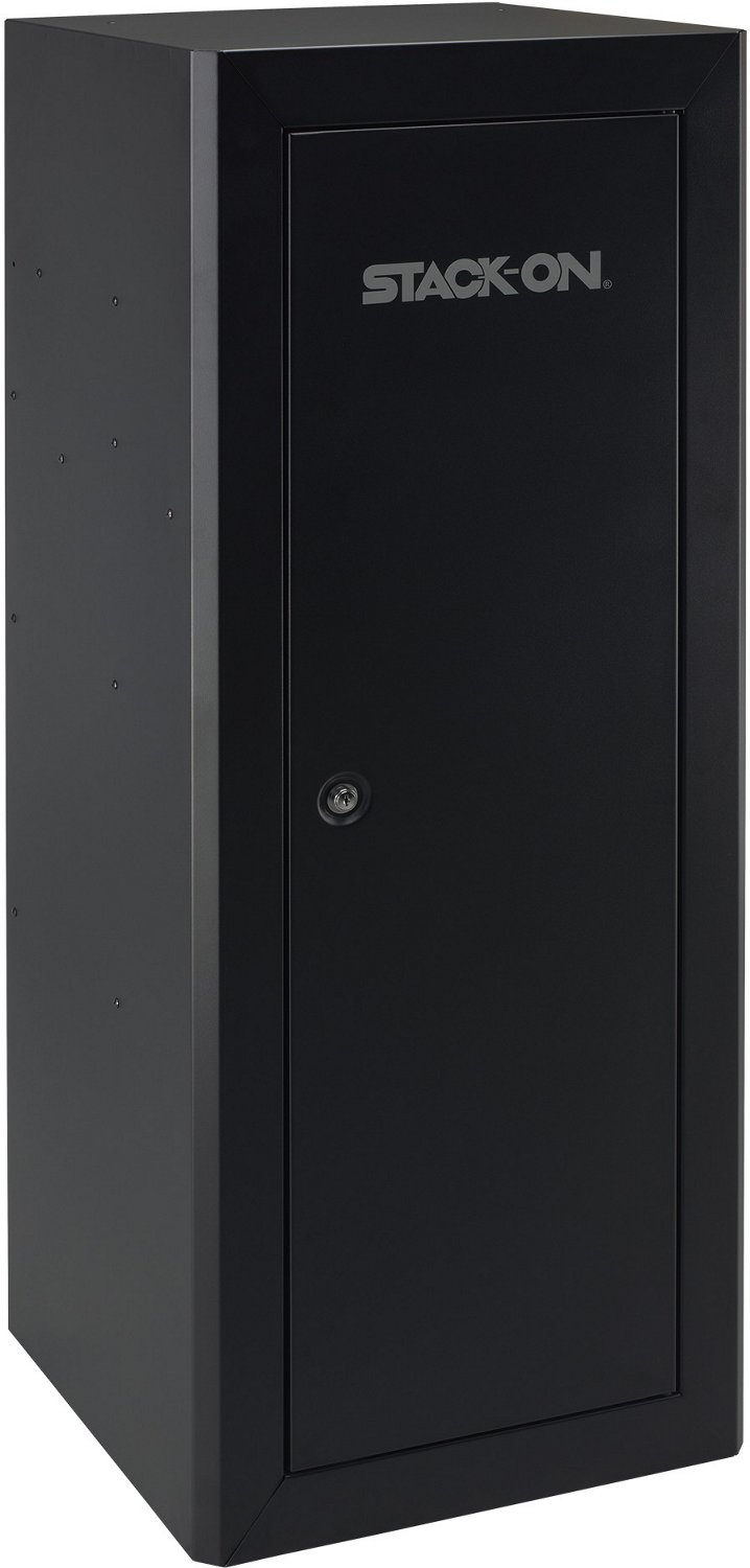 Have peace of mind with the Stack-On Welded-Steel 18-Gun Security Cabinet. This welded-steel security cabinet stores 18 long guns or 9 long guns with 4 half-width shelves for storing accessories, ammunition and valuables. The 4-way locking system secures the 19 gauge steel door on all sides, with a shrouded lock and double-bitted key to guard against attacks. Molded barrel rests cradle your firearms, while the beveled-edge design in a matte finish adds a stylish look.
