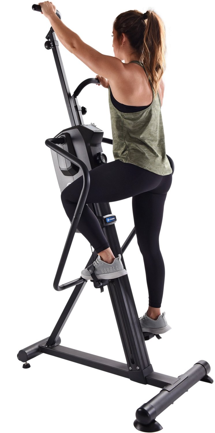Perform full body exercises with the Stamina Cardio Climber. The 8 levels of magnetic resistance lets you customize your workout, while the textured pedals with adjustable straps help keep your feet secure. The broad horizontal handlebars offer support, and the built-in wheels allow for easy transport.
