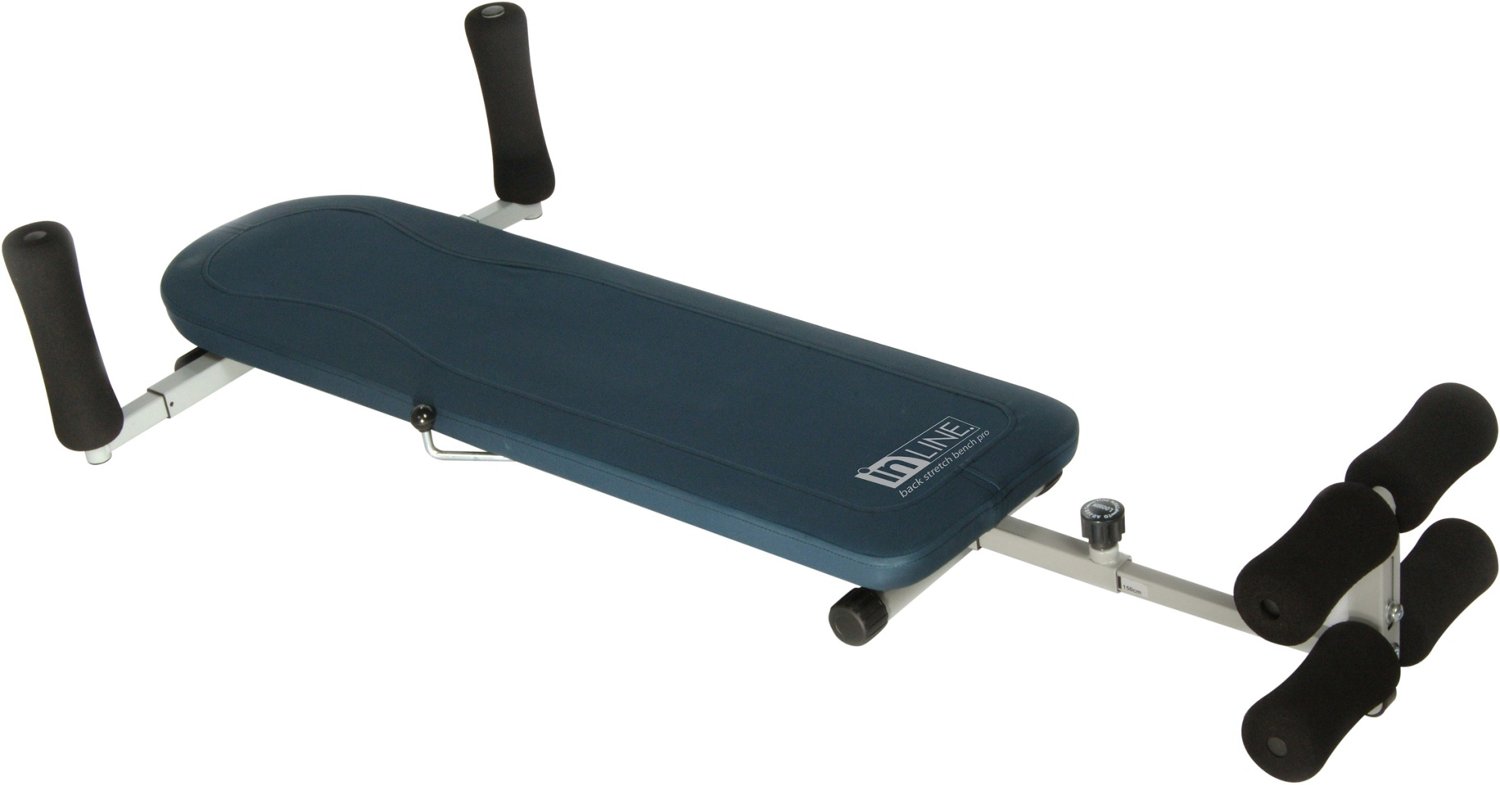 Great for home or office, the Stamina® InLine® Back Stretch Bench is designed to help decompress your back, shoulders, hips, knees and ankles. The frame is made of steel for durability and the upholstered vinyl bench, ankle and arm supports are cushioned for comfort. The arm supports are adjustable to 3 different widths to accommodate multiple users. Portable.