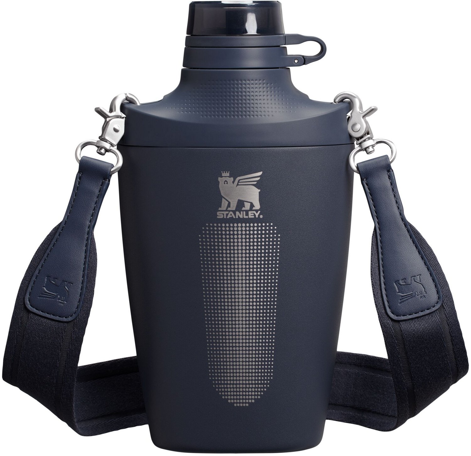 Stay hydrated on the go with the Stanley 23 oz. Cross Bottle. It is designed for hands-free hydration. Made of recycled stainless steel, it is easy to clean, and the double-wall vacuum insulation keeps your drink cold for 12 hours. Its leakproof Tritan lid secures your drink.