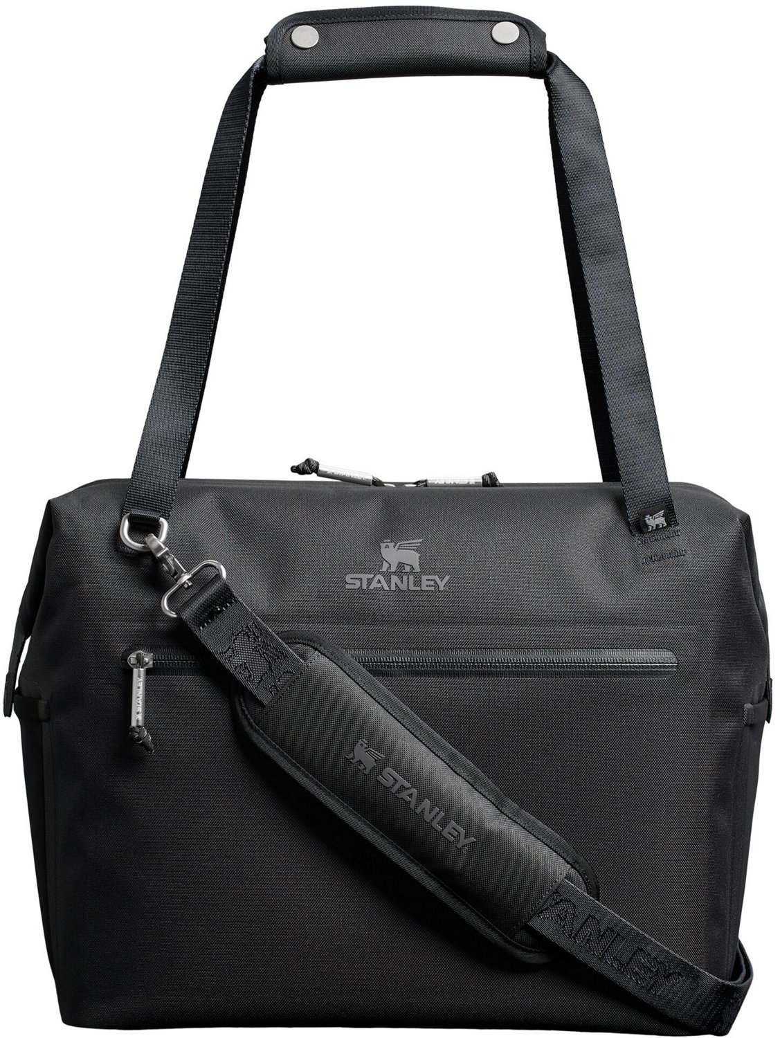 Bring snacks and drinks with you in the Stanley All Day Julienne 20 qt Max Cooler. This cooler is made of durable recycled polyester for lasting use, and the cross-body strap makes it easy to bring with you. The wire frame opening with a zipper allows for easy access.