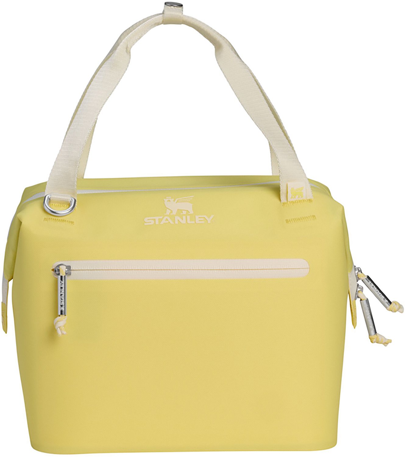 Keep your food refrigerated with the Stanley All Day Julienne 7.4 QT. Mini Cooler. The 100% recycled polyester makes dining outside more sustainable. Its 10-can storage capacity keeps your goods cool for 12 hours, and the hinge top zips open to help with unpacking. Its optional strap can be attached to sling over your shoulder.