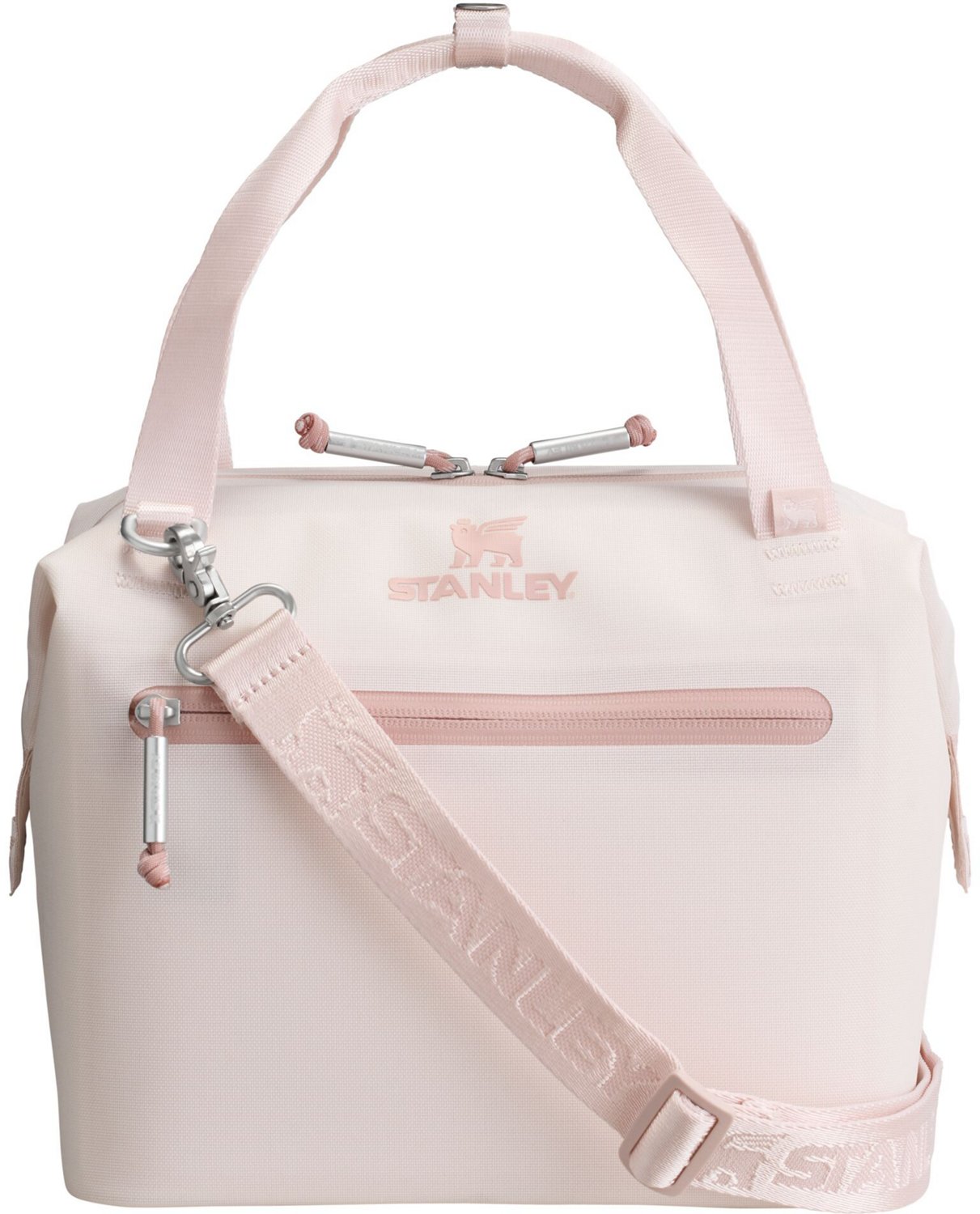 Keep your food refrigerated with the Stanley All Day Julienne 7.4 QT. Mini Cooler. The 100% recycled polyester makes dining outside more sustainable. Its 10-can storage capacity keeps your goods cool for 12 hours, and the hinge top zips open to help with unpacking. Its optional strap can be attached to sling over your shoulder.