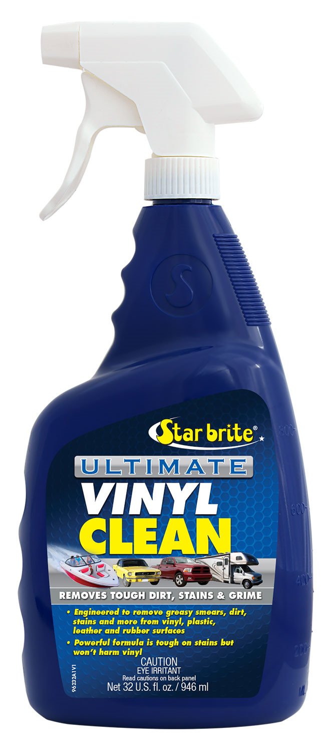 Keep the vinyl, plastic, rubber and leather surfaces on your boat looking great with the Star Brite Ultimate Vinyl Clean 32 oz. Spray. This powerful spray is formulated to remove tough stains, greasy smears and grime easily without harming sensitive surfaces.