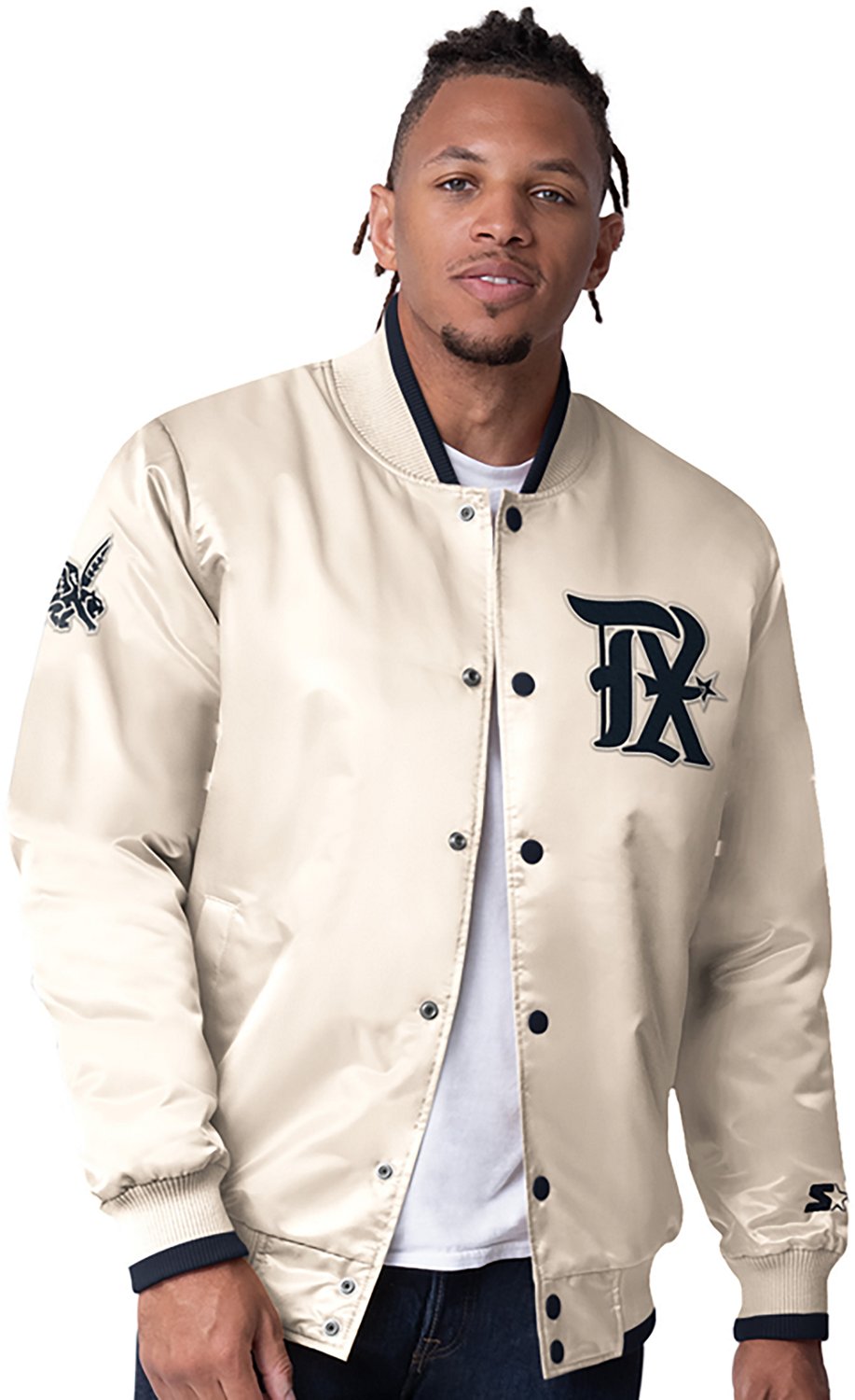Stay comfortable as you root for your favorite team with the Starter Men's Texas Rangers City Connect Scout II Long Sleeve Jacket. It's made with polyester box twill satin for regular use, and the team colors let everyone know what club you support. The team logos and wordmarks are additional signs of your dedication.