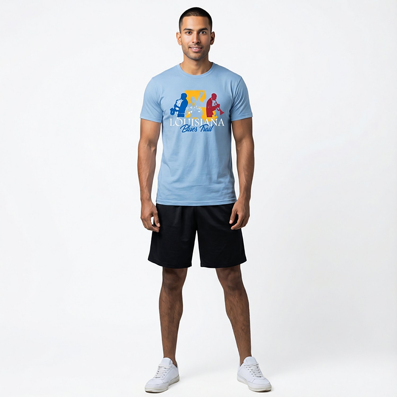 Look your best in the State Life Men's Louisiana The Trail Short Sleeve Graphic T-shirt. It is made of 100% cotton. The short sleeves keep you cool, and its front chest is decorated with the State Life logo. The front chest has "Louisiana Blues Trail" screen printed on.