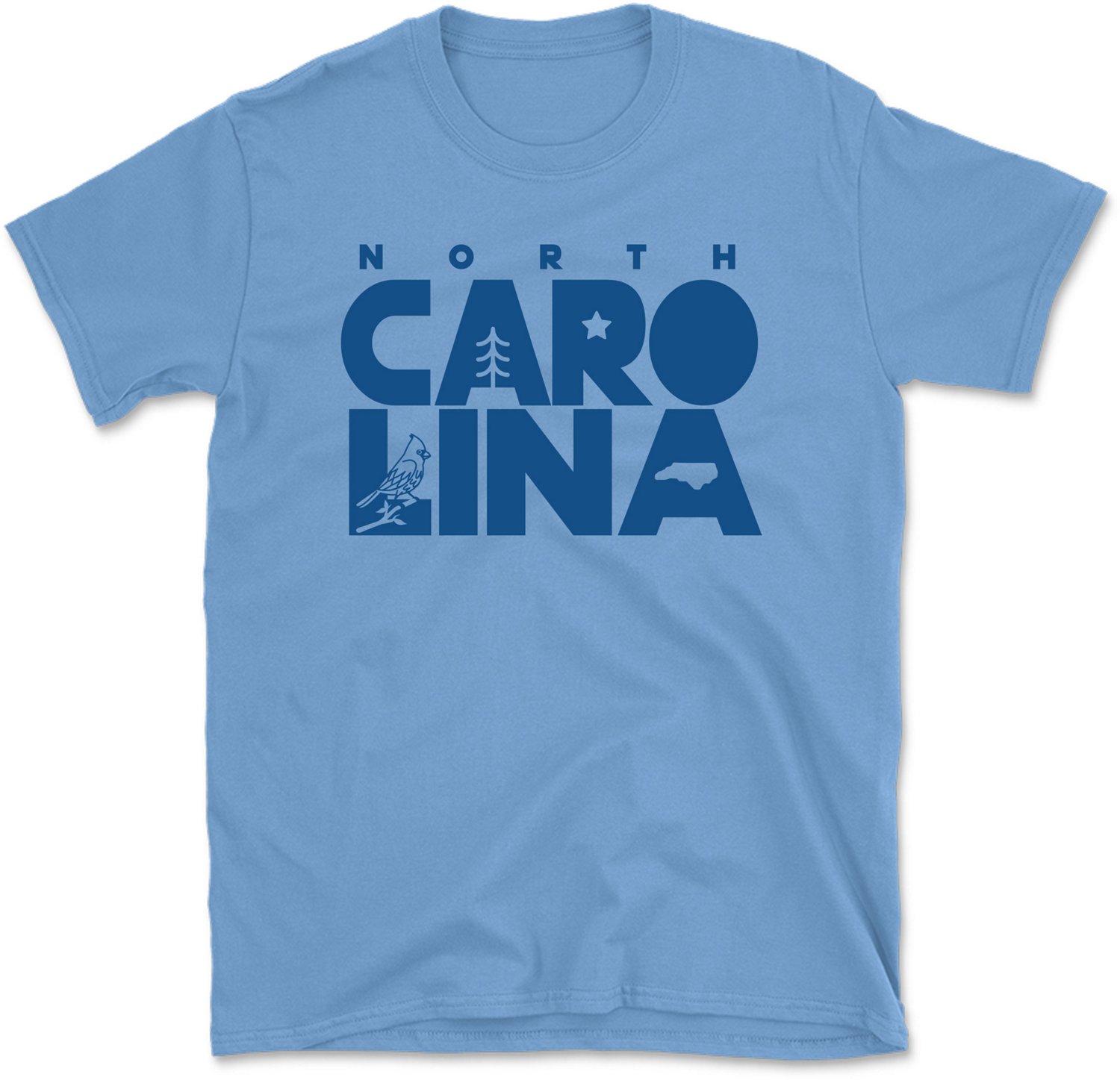 "North Carolina" screen printed on the front chest