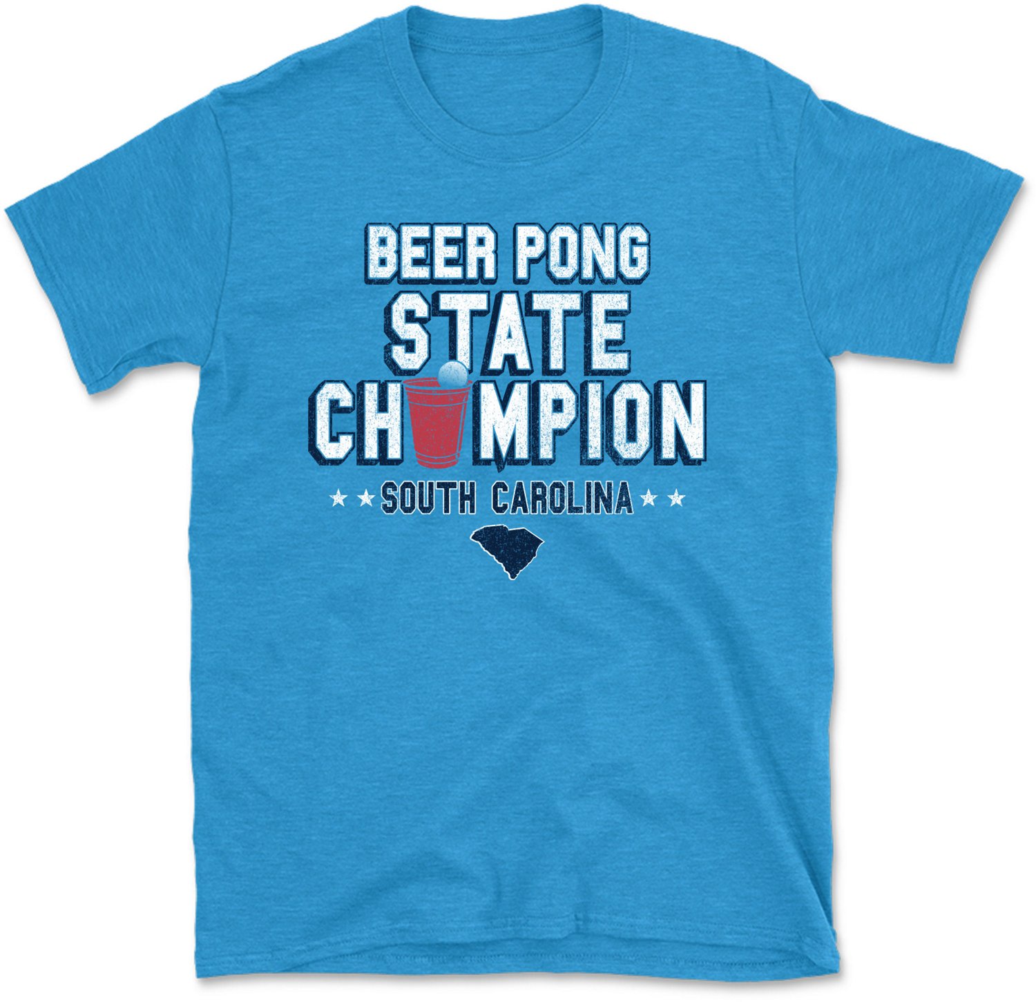 "Beer Pong State Champion" is screen printed across the chest